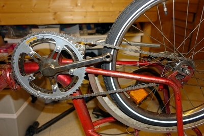 Das 52er Kettenblatt wurde auf das vorhandene 44er draufgeschraubt. Garantiert unschaltbar.