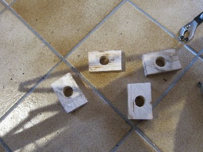 Jetzt kommt der spannende Teil der Sache, der Lagereinbau. Die kanonische Lösung wäre die Plastikschalen einzuschlagen. Dazu verkauft FAG ein Werkzeug. Ich entschied mich es mit der 'Schraubstock-to-go' Methode zu versuchen. Um die Welle nicht mitzupressen hab ich mir Holzadapter gemacht